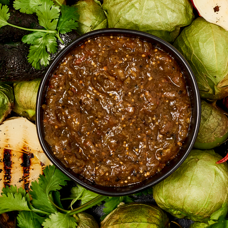 Charred tomato, tomatillo and poblano with Chile de Arbol