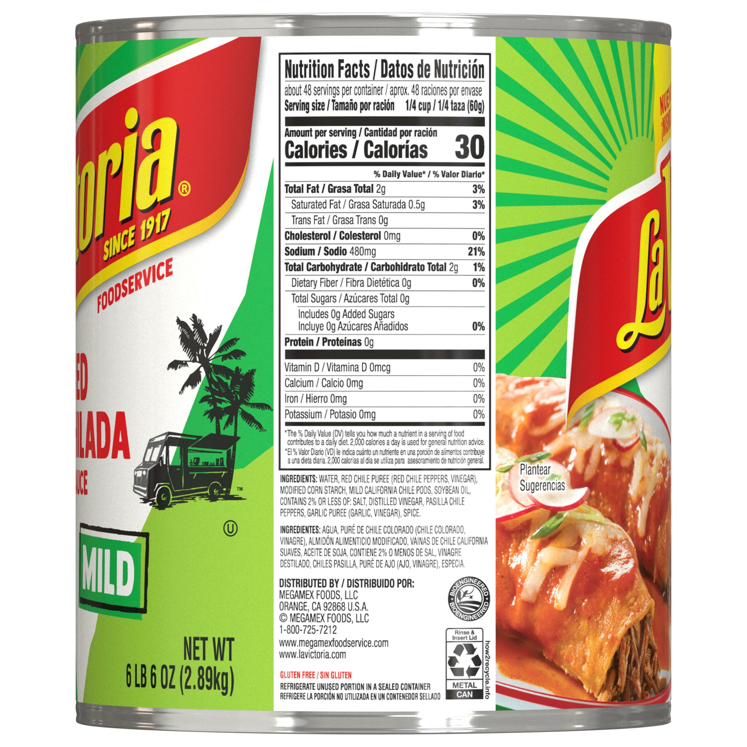 Water, Red Chiles, Modified Food Starch, Dehydrated California Chile Pods, Soybean Oil, Salt, Distilled Vinegar, Dehydrated Pasilla Pods, Garlic, Spice.