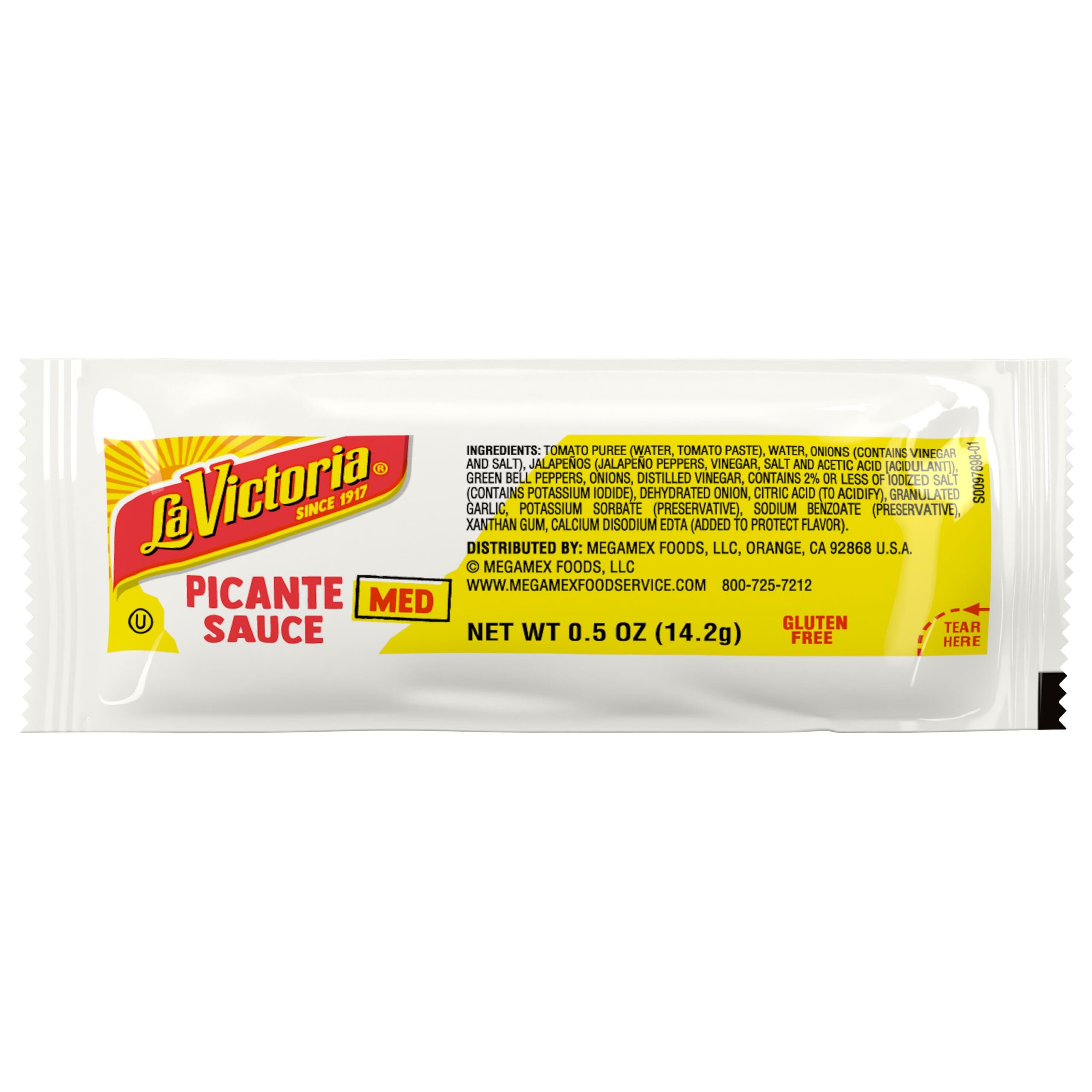 07686 La Victoria Picante Sauce Medium 0.5oz Nutrition facts based on 10/18/2018.